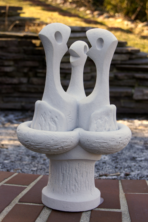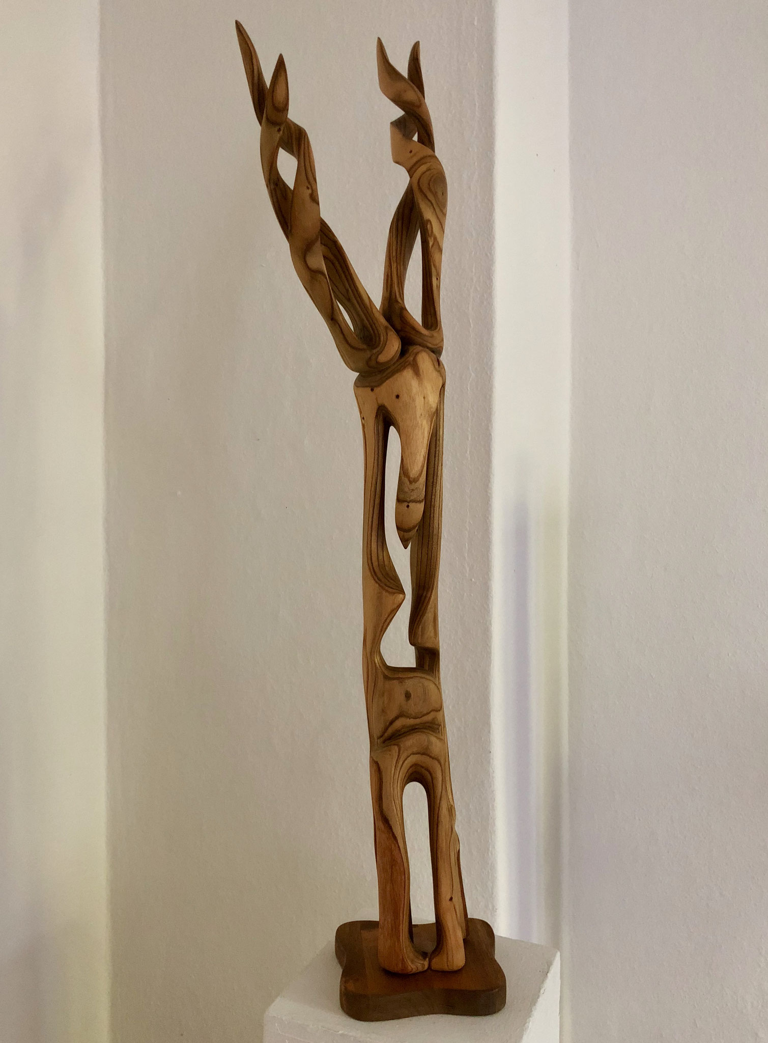 sind Holz, Stein und in Gips modellierte Figuren, die ich selbst in Beton gieße oder sie in Bronze, Alu oder Eisen gießen lasse. Gerade der Betonguß, mit dem ich mich zur Zeit intensiver