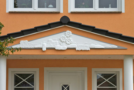 Fassade in zwei Reliefs, die vorher im Atelier gefertigt wurden.